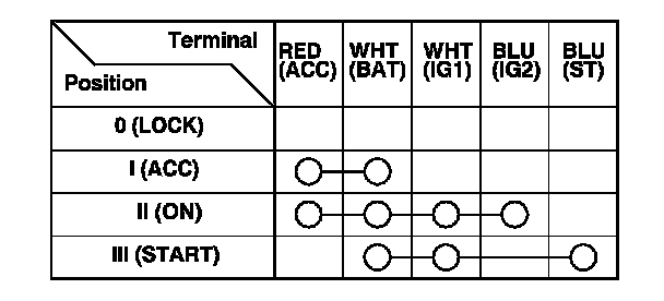 5. If the continuity is not as specified, replace the ignition switch. Ignition Switch Replacement