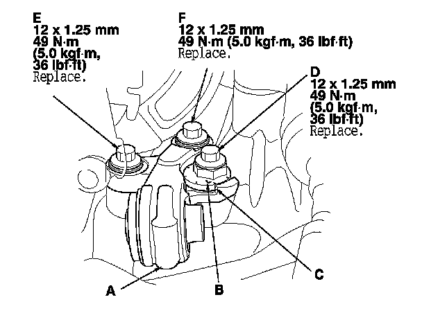 -5 Tighten the lower arm bracket mounting bolt (F).