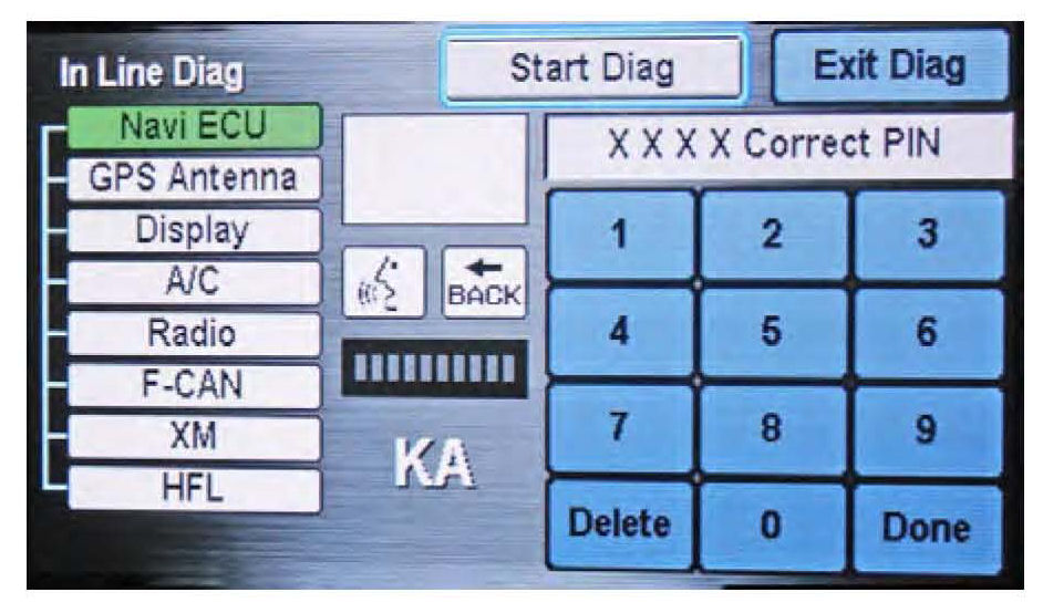 3. If the navigation factory In-Line diagnosis screen (shown) is displayed, do the following. If not, go to step 5.