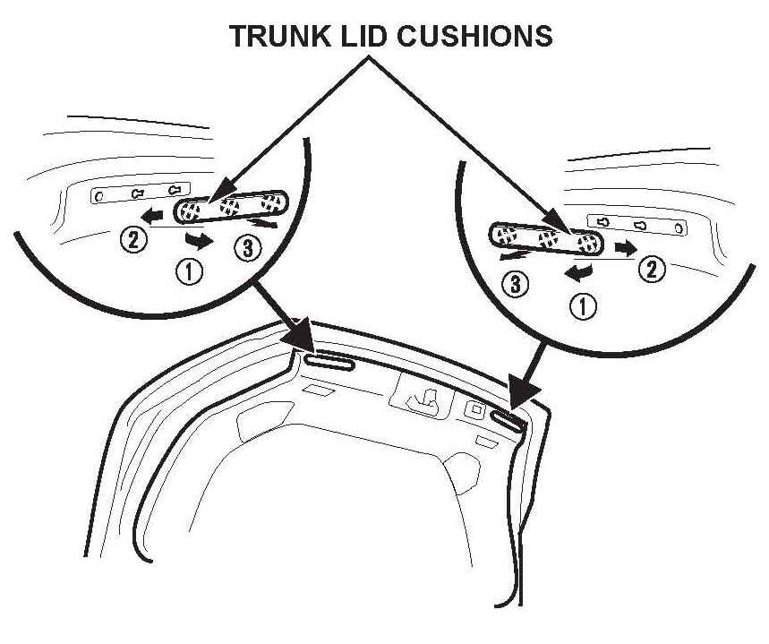 18. Reinstall the rear license trim, the trunk lid trim, the trunk lid cushions, and the trunk light.