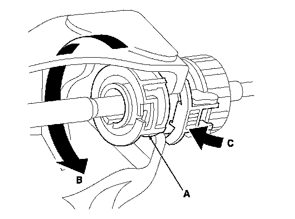 5. Rotate the socket holder retainer (A) counterclockwise (B) until it stops, and push in the retainer (C) to lock it.