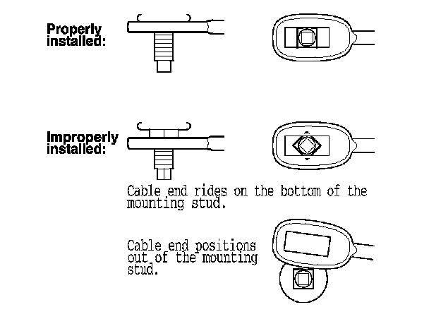 17. If the cable end is out of position on the mounting stud, remove the shift cable from the bracket, and reinstall the shift cable. Do not install the shift cable end on the mounting stud while the shift cable is on the bracket. If the cable end rides on the bottom of the mounting stud, rotate the stud and align the square fitting with the hole.