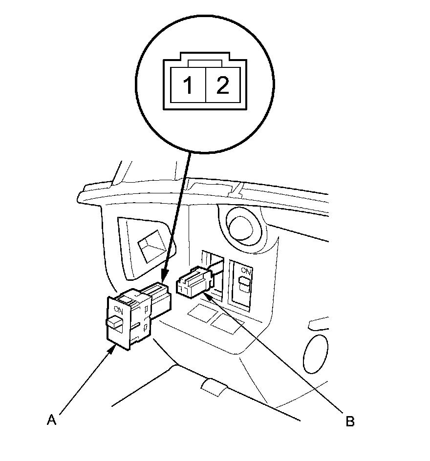 3. Disconnect the 2P connector (B) from the trunk lid opener main switch.