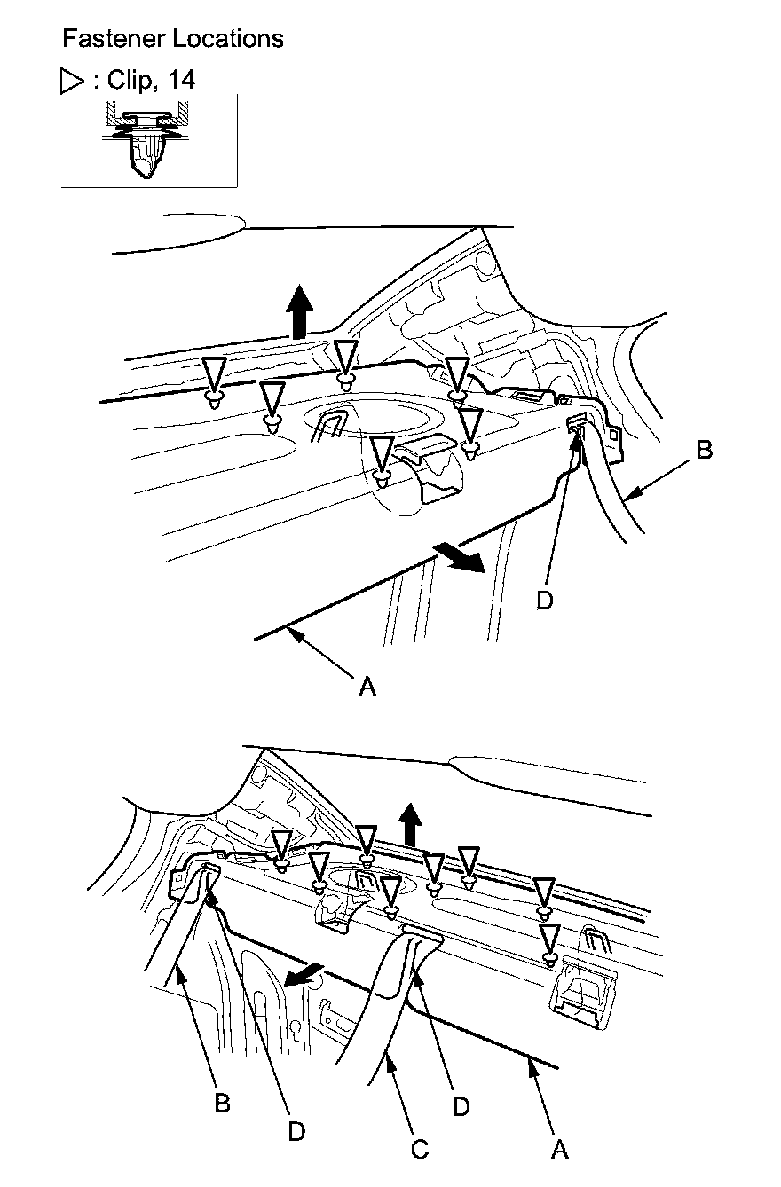 1. Remove the C-pillar trim, both sides Interior Trim Removal/Installation - Pillar Areas.