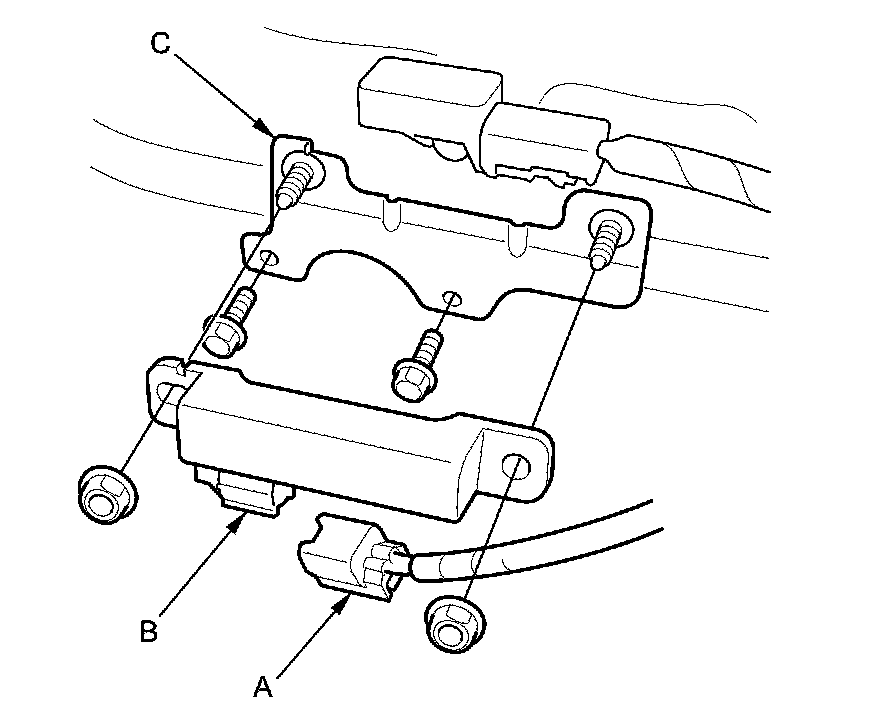 5. If necessary, remove the two bolts and replace the bracket (C).
