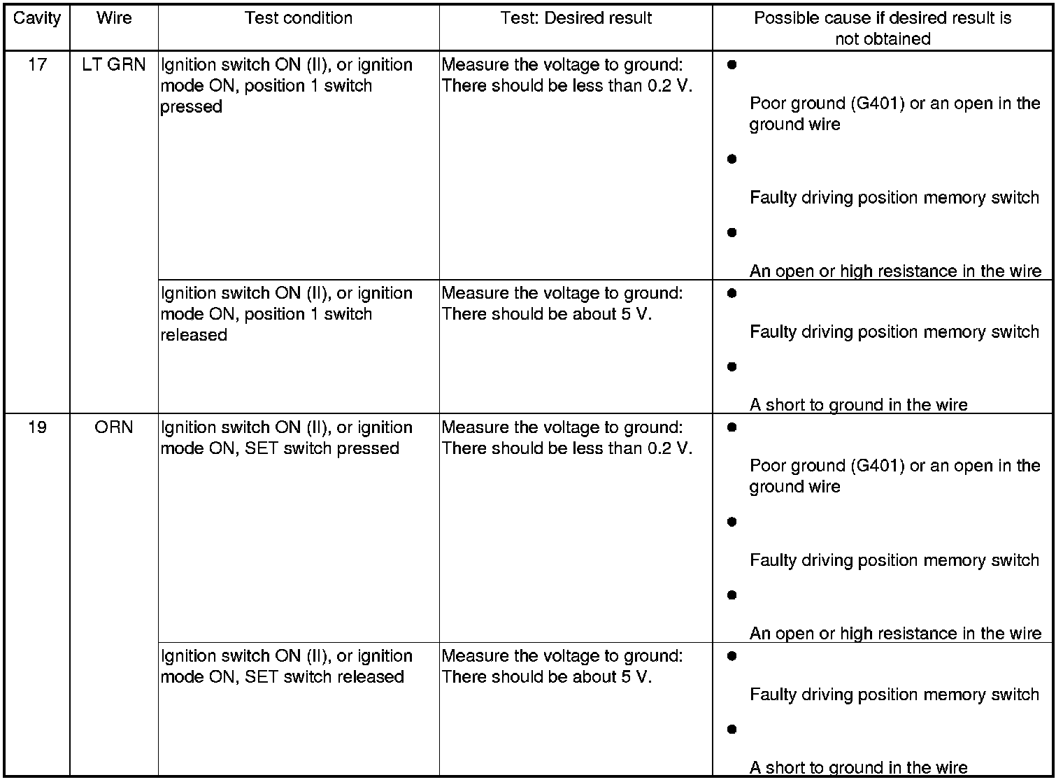Driving Position Memory System (Door Multiplex Control Unit) Input Test