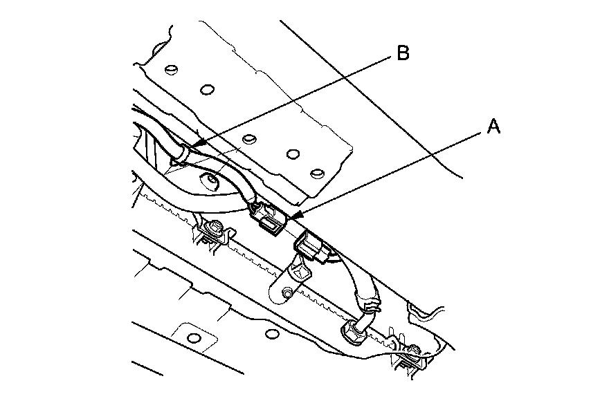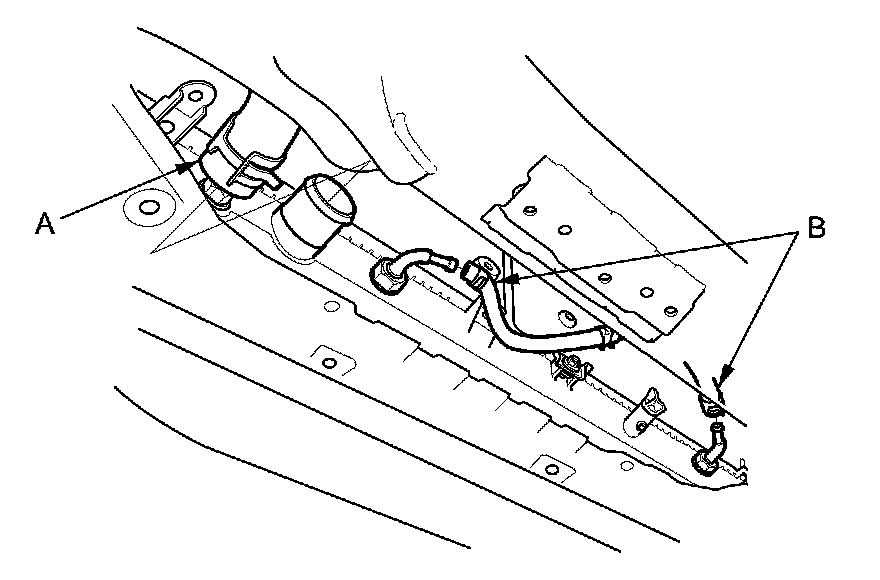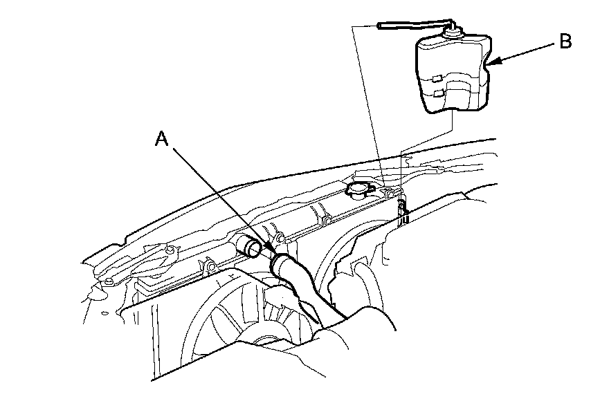 9. A/T model: Disconnect the automatic transmission fluid (ATF) cooler hoses (B) from the radiator Service and Repair, then plug the cooler hoses and the lines.