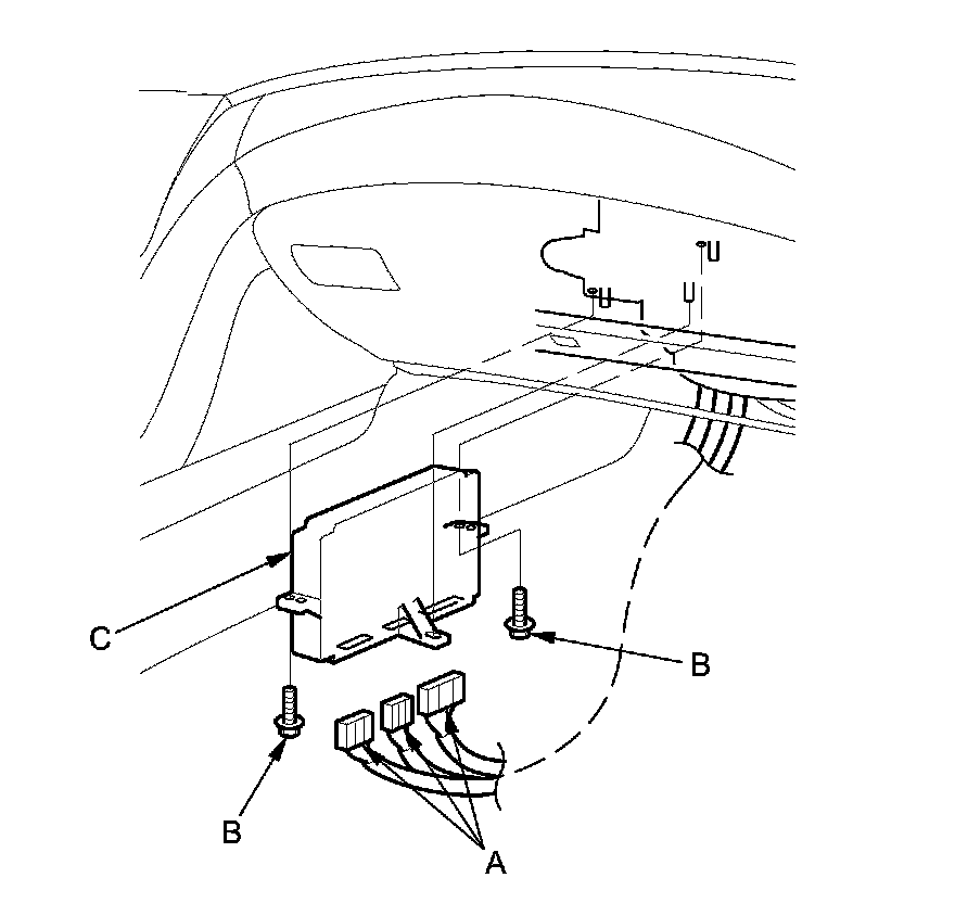 2. Disconnect the connectors (A). Remove the bolts (B) and the climate control unit (C).