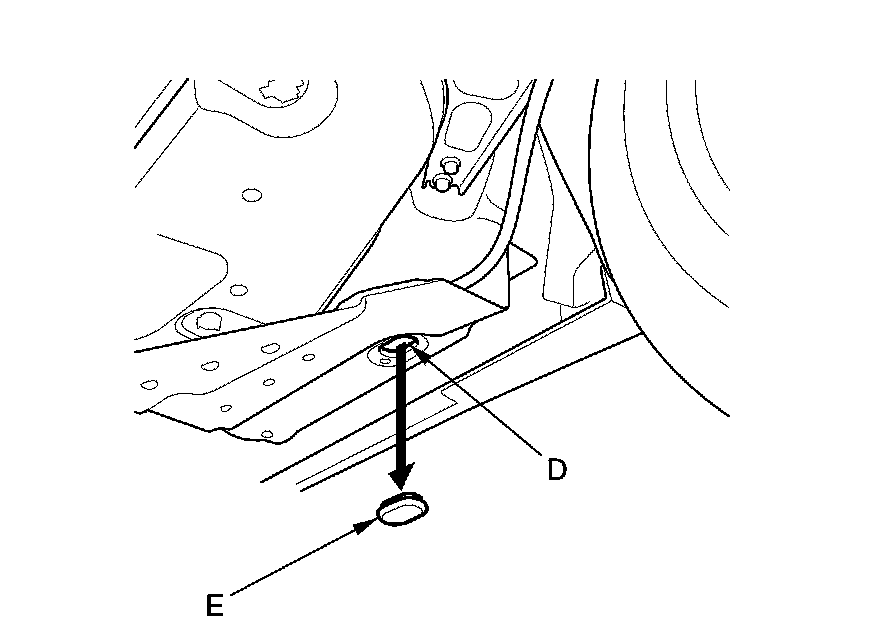 NOTE: The tie down hook slots use rubber plugs (E) to cover the openings.