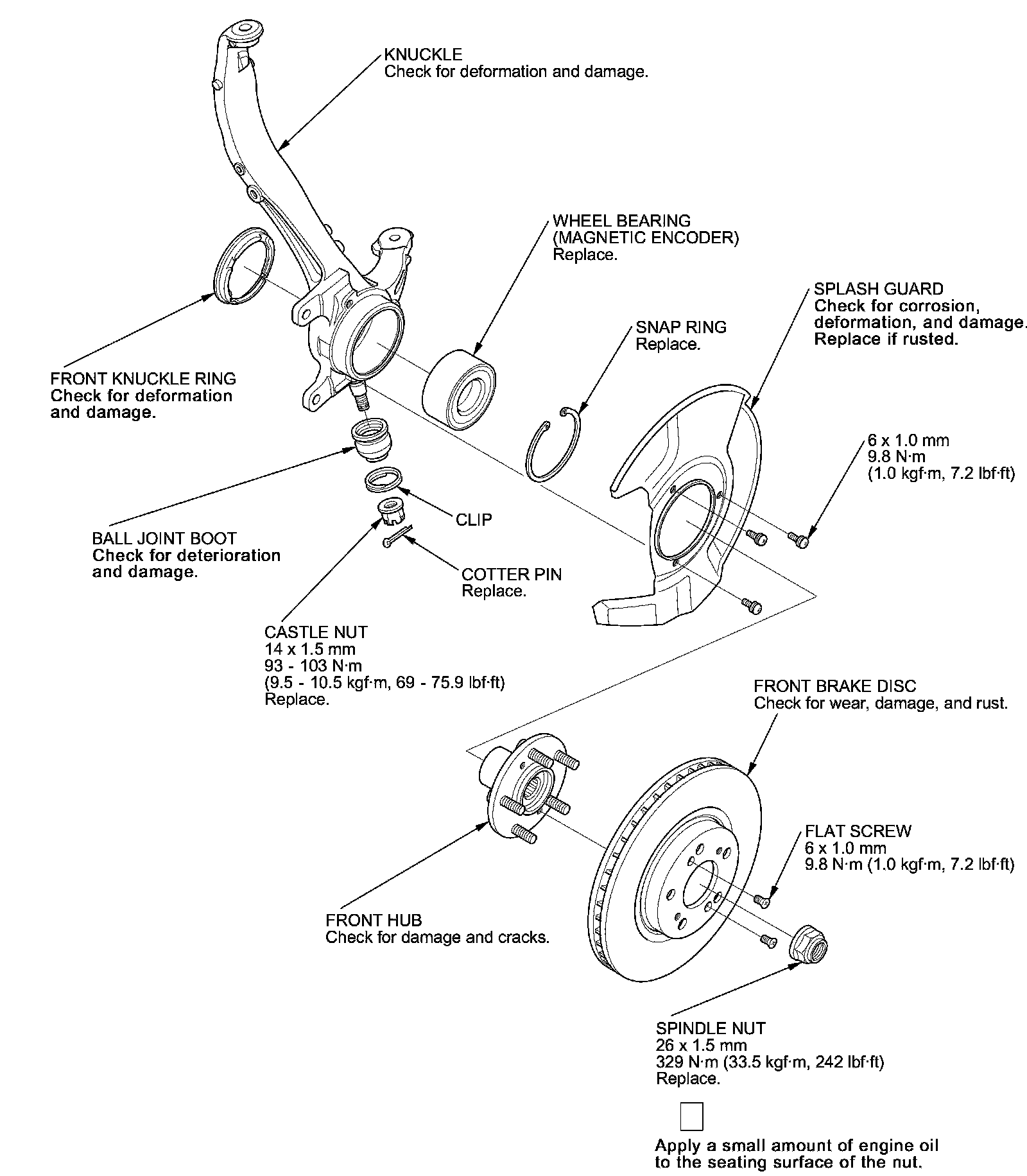 16. Install the knuckle/hub in the reverse order of removal, and note these items: