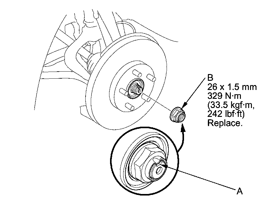 - Before installing the spindle nut, apply a small amount of engine oil to the seating surface of the nut. After tightening, use a drift to stake the spindle nut shoulder against the driveshaft.