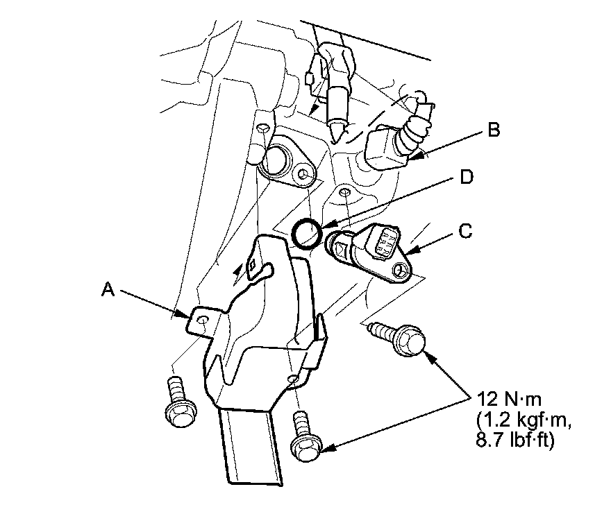 5. Install the parts in the reverse order of removal with a new O-ring (D).