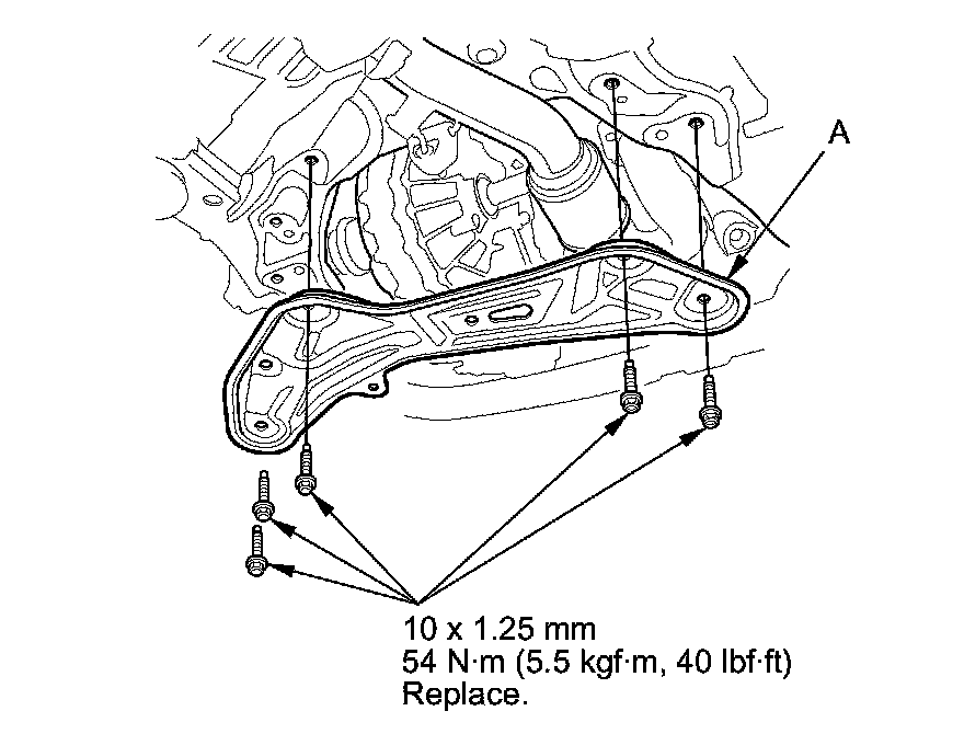 24. Remove the flange bolts, and remove the front subframe stiffener (A).