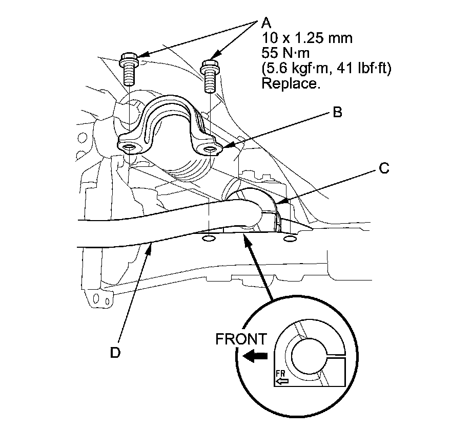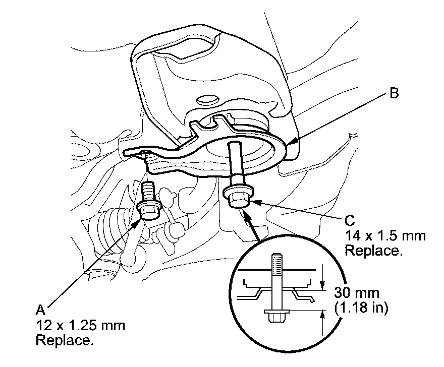 NOTE: Use new nuts (C) and a front engine mount bolt during reassembly.