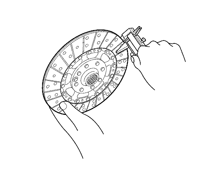 10. Measure the clutch disc thickness. If the measurement is less than the service limit, replace the clutch disc.