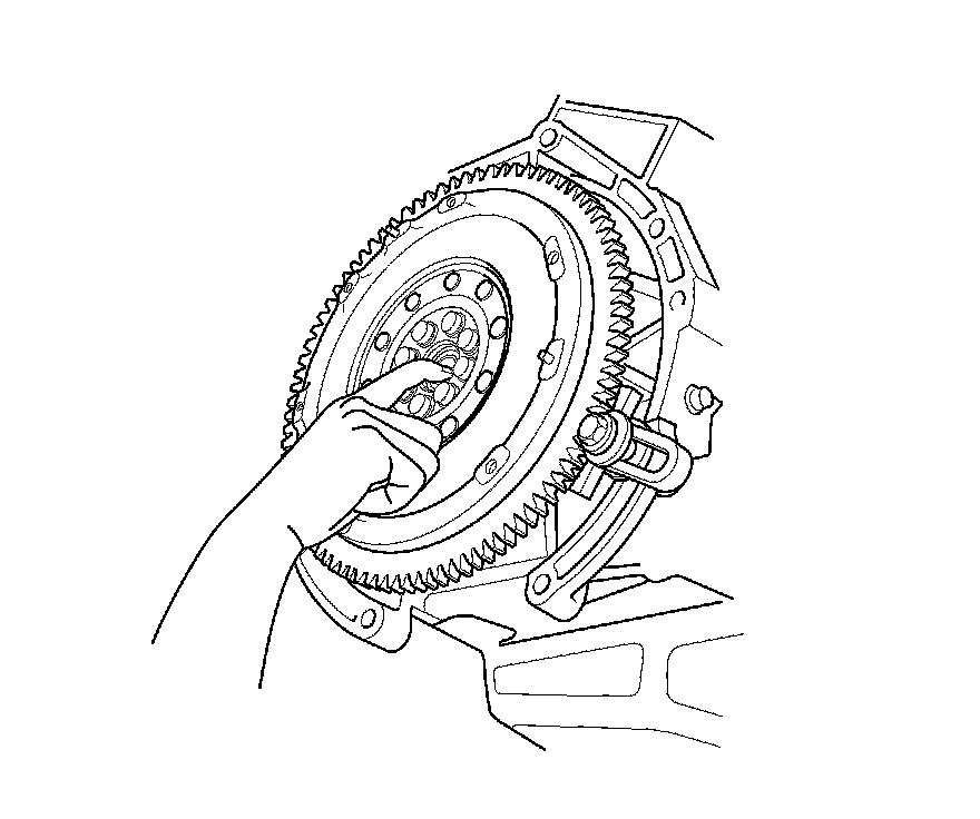 17. Loosen the flywheel mounting bolts in a crisscross pattern in several steps. Remove the bolts, then remove the flywheel and the ring gear holder.