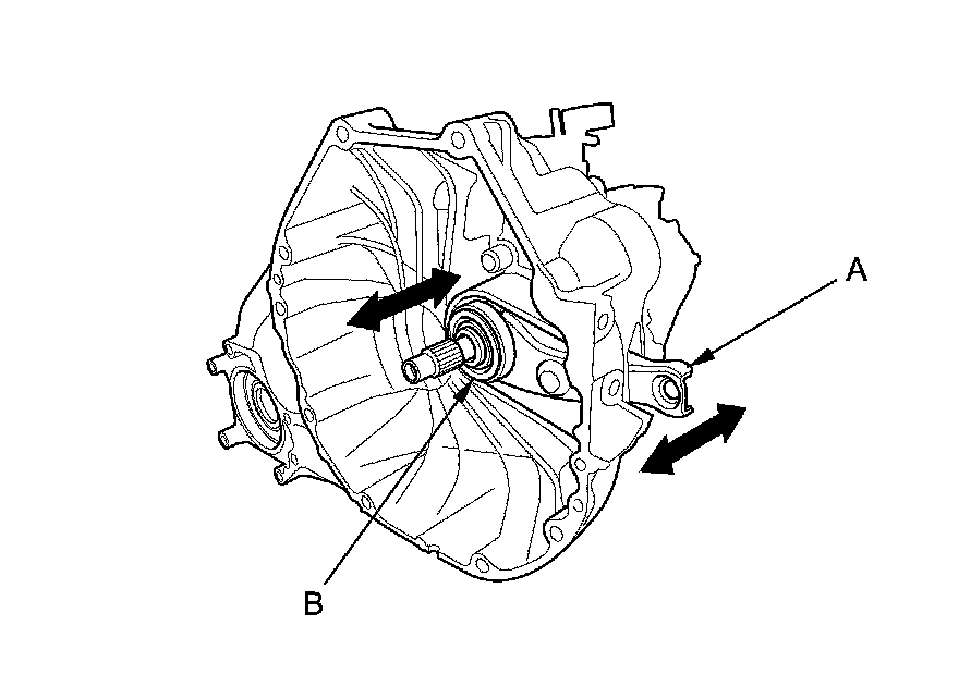 9. Move the release fork (A) right and left to make sure that it fits properly against the release bearing (B) and that the release bearing slides smoothly. Wipe off any excess grease.