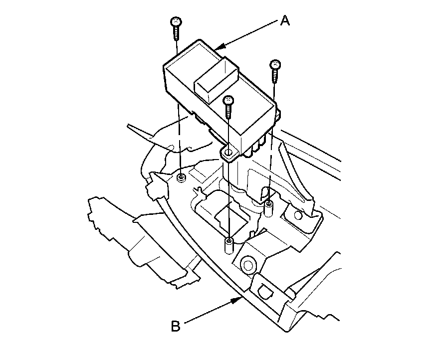 2. Remove the three screws and rear power window switch (A) from the armrest assembly (B).