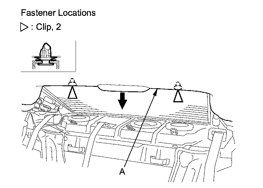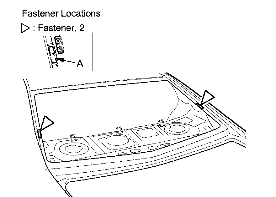 4. Pull down the rear area of the headliner (A) by detaching the clips. Take care not to bend the headliner excessively, or you may crease or break it.