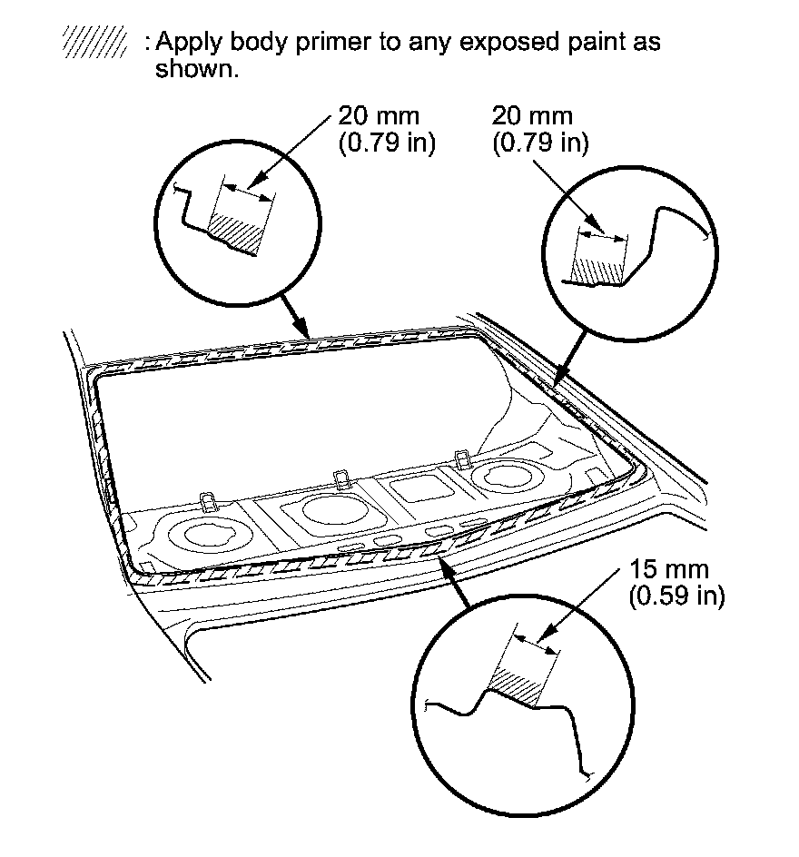 - Never touch the primed surfaces with your hands. If you do, the adhesive may not bond to the rear window properly, causing a leak after the rear window is installed.