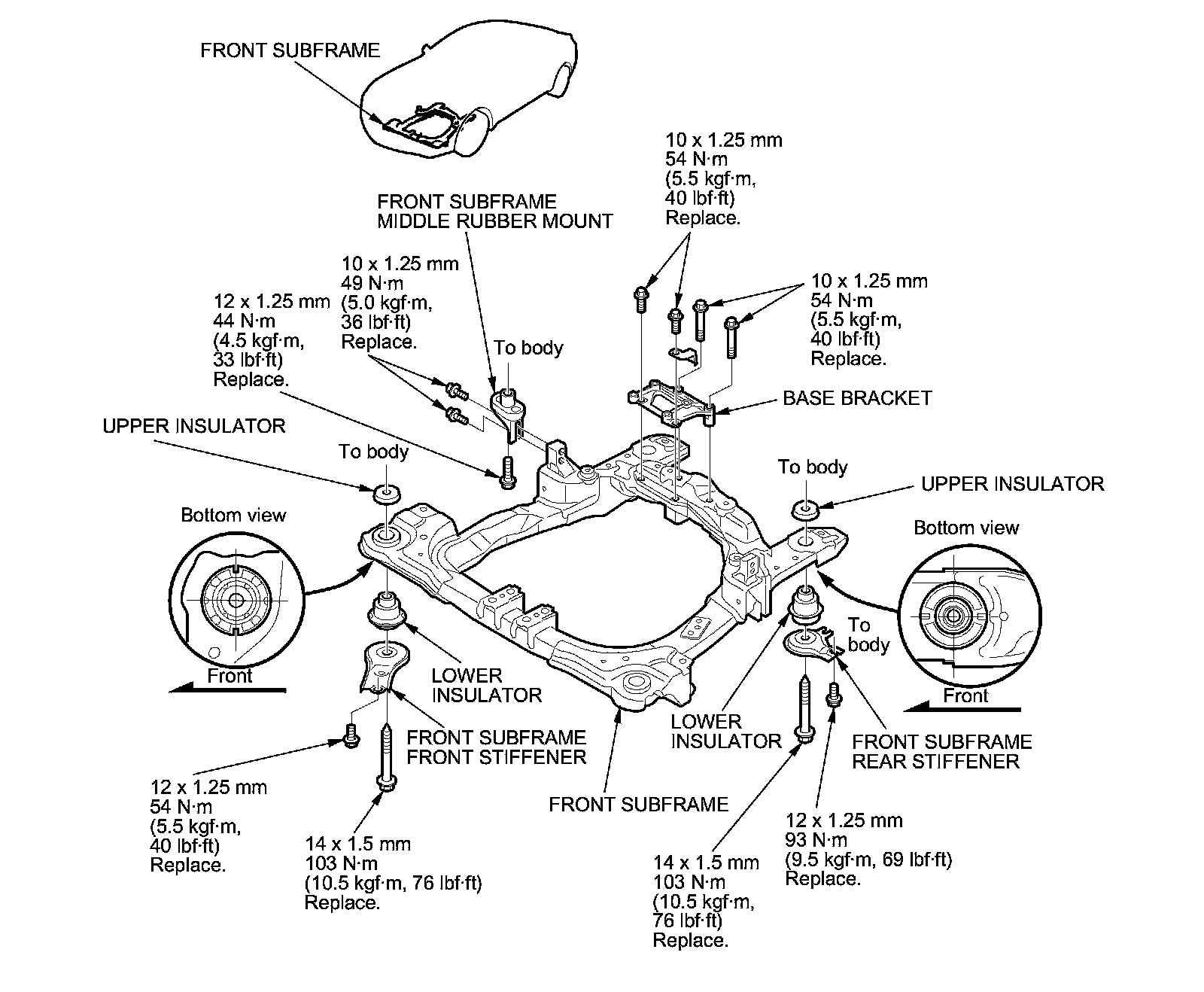 - Always replace any removed subframe mounting bolts with new ones.