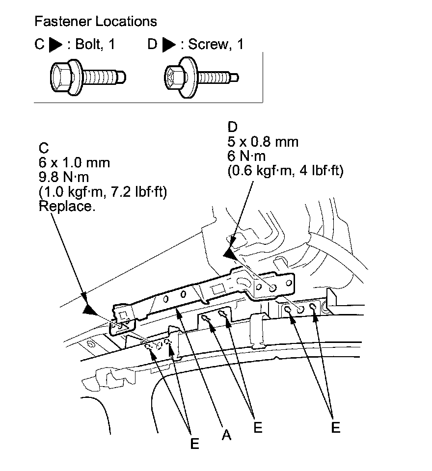 1. Remove the side curtain airbag mounting bolts (C, D).