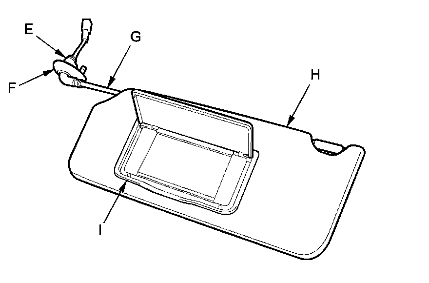 - Any cracks in the sunvisor bracket cover (F)