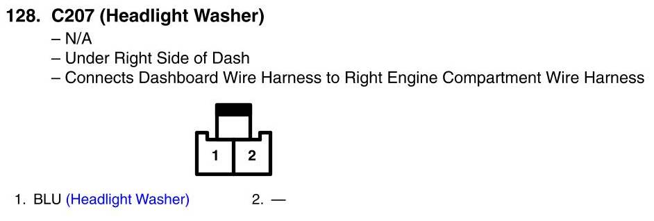 C207 Connector View (Headlight Washer)