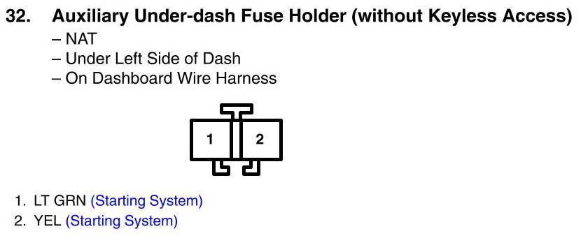 View 32 - Auxiliary Under-Dash Fuse Holder Connector View (without Keyless Access)