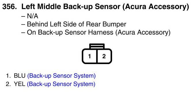 View 356 - Left Middle Back-Up Sensor Connector View (Acura Accessory)