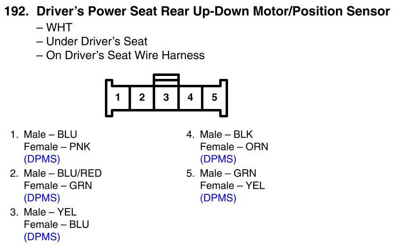 Driver's Power Seat Rear Up-Down Motor/Position Sensor Connector View