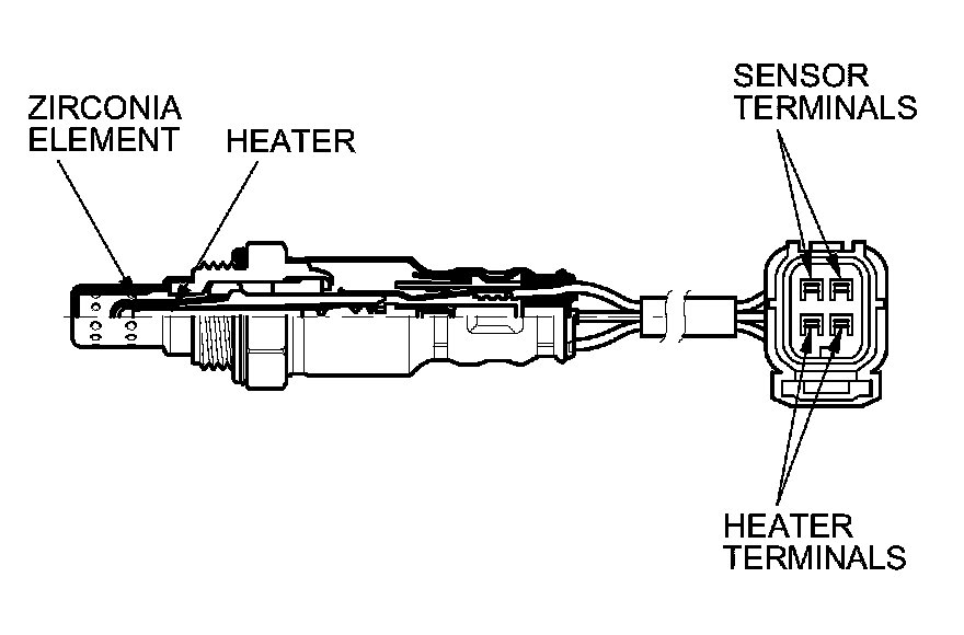 The secondary HO2S detects the oxygen content in the exhaust gas downstream of the warm up three way catalytic converter (WU-TWC), and sends signals to the ECM/PCM. To stabilize its output, the sensor has an internal heater. The ECM/PCM compares the HO2S output with the A/F sensor output to determine catalyst efficiency. A secondary HO2S is installed in each bank downstream of the WU-TWC.