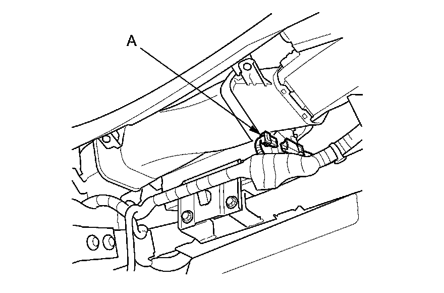 5. Remove the glove box Glove Box Removal/Installation, then disconnect the dashboard wire harness 4P connector (A) from the front passenger's airbag 4P connector.