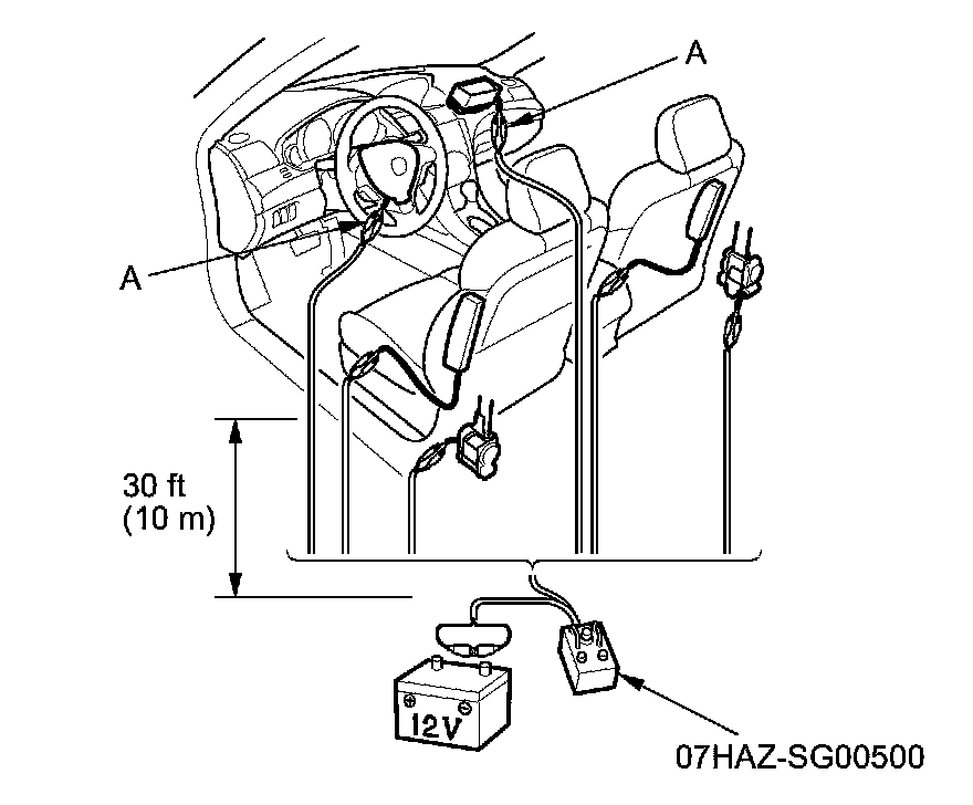 - Place the deployment tool at least 30 ft (10 m) away from the vehicle.