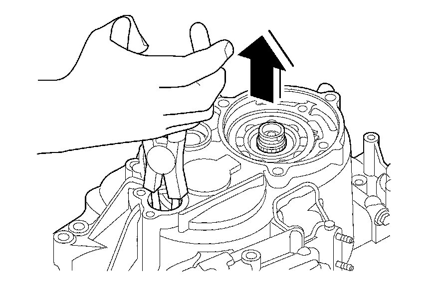 21. While expanding the snap ring of the countershaft bearing using snap ring pliers, lift the transmission housing.