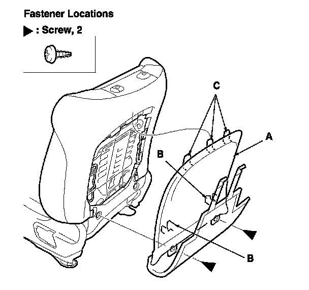 Turn over the seat-back cover (B) and the pad (C) as needed.