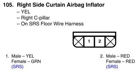 View 105 - Right Side Curtain Airbag Inflator Connector View