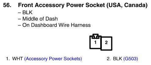 View 56 - Front Accessory Power Socket Connector View (USA, Canada)