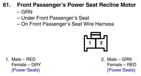 View 61 - Front Passenger's Power Seat Recline Motor Connector View
