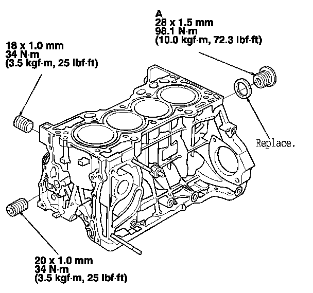 NOTE: When installing the sealing bolt (A), always use a new washer.