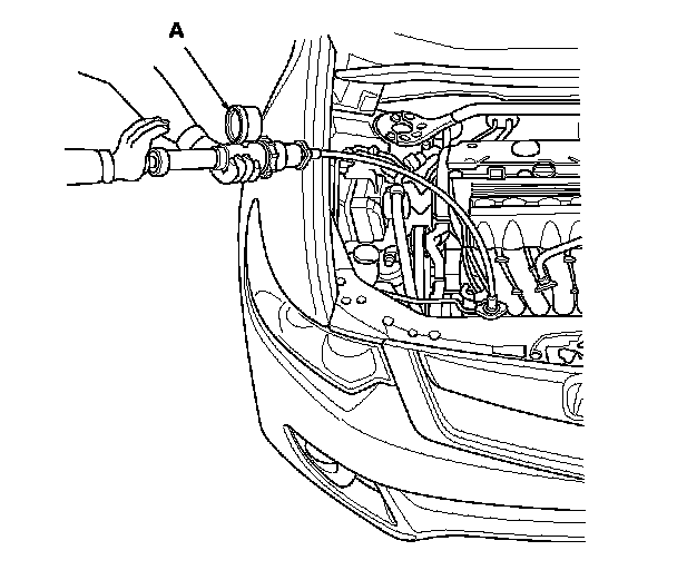 2. Attach a commercially available pressure tester (A) to the radiator, and apply a pressure of 93-123 kPa (0.95-1.25 kgf/cm2, 14-18 psi).