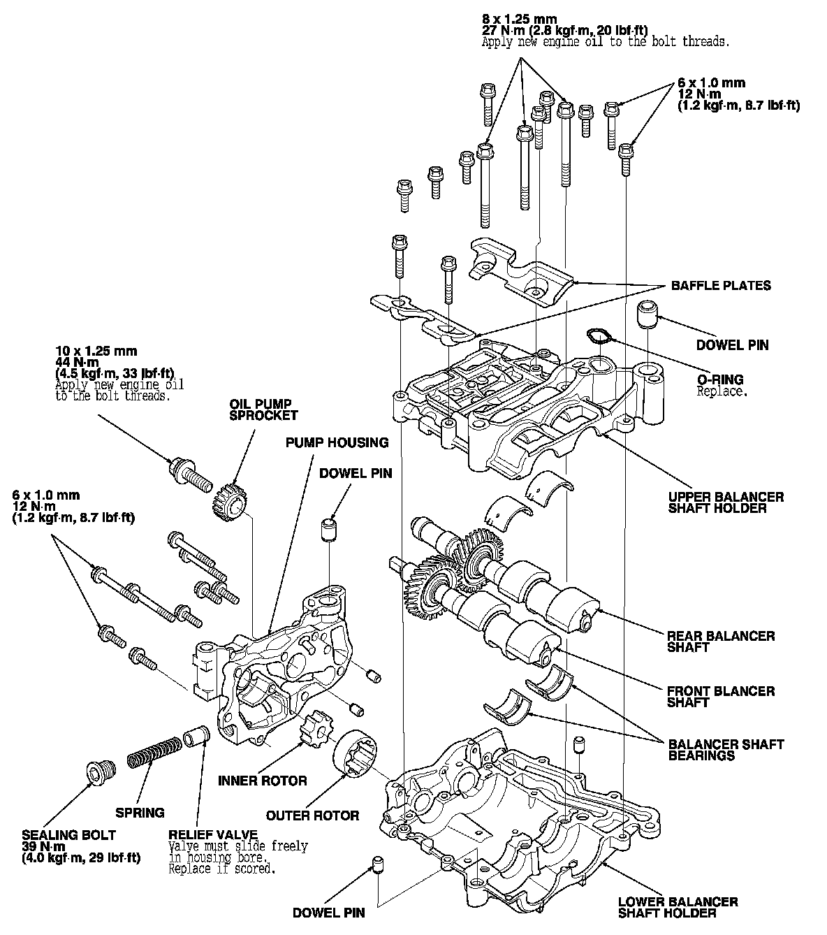 9. Reinstall the bearings and the upper balancer shaft holder, then tighten the bolts.