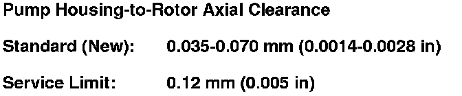 3. Check the pump housing-to-rotor axial clearance between the rotor (A) and the pump housing (B). If the pump housing-to-rotor axial clearance exceeds the service limit, replace the oil pump.