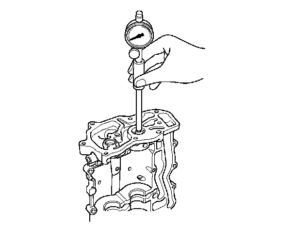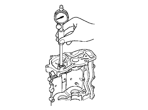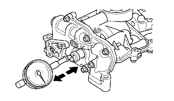 2. Zero the dial indicator against the end of the balancer shaft, then push the balancer shaft back and forth and read the end play.