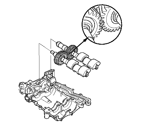 1. Seat the balancer shaft by pushing it away from the oil pump sprocket end of the oil pump.