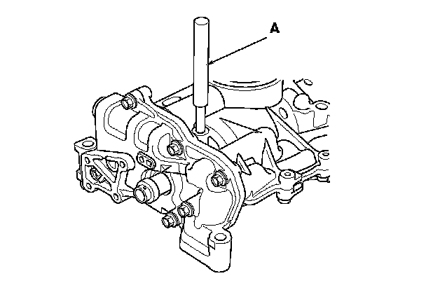 3. To hold the rear balancer shaft, insert a 6 mm long pin punch (A) (Snap-on PPC108LA or equivalent) into the maintenance hole in the balancer shaft holder and through the rear balancer shaft.