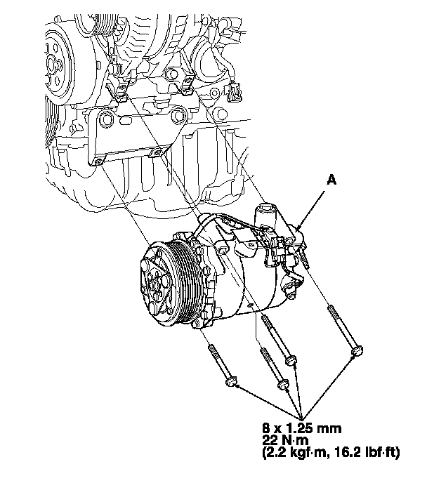 8. Install the A/C compressor in the reverse order of removal, and note these items: