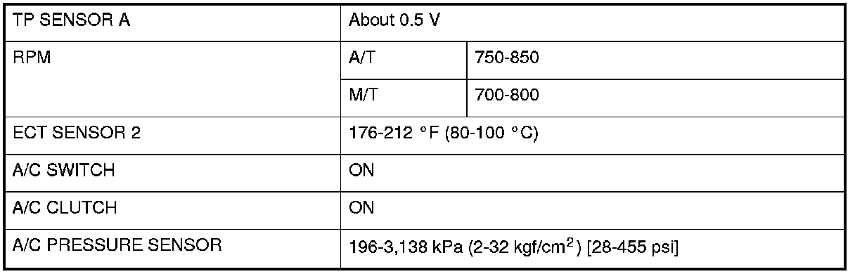 6. Using the HDS, confirm the following values in the PGM-FI Data List at idle.