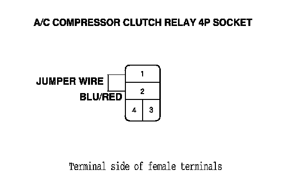 9. Connect the A/C compressor clutch relay 4P socket terminals No. 1 and No. 2 with a jumper wire.