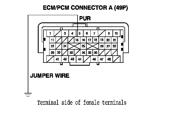 17. Connect the ECM/PCM connector A (49P) terminal No. 15 to body ground with a jumper wire.
